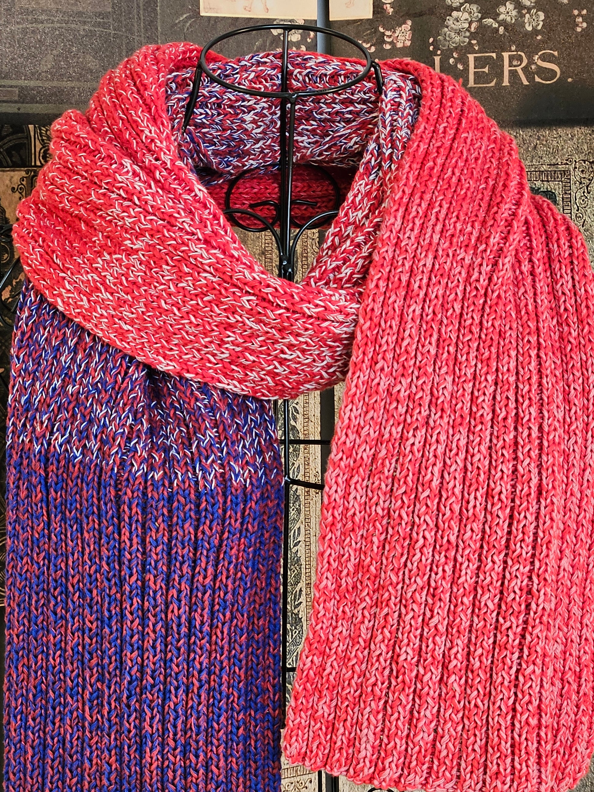 Strawberry and Cornflower Extra long (200cm) handcrafted scarf 100% organic cotton