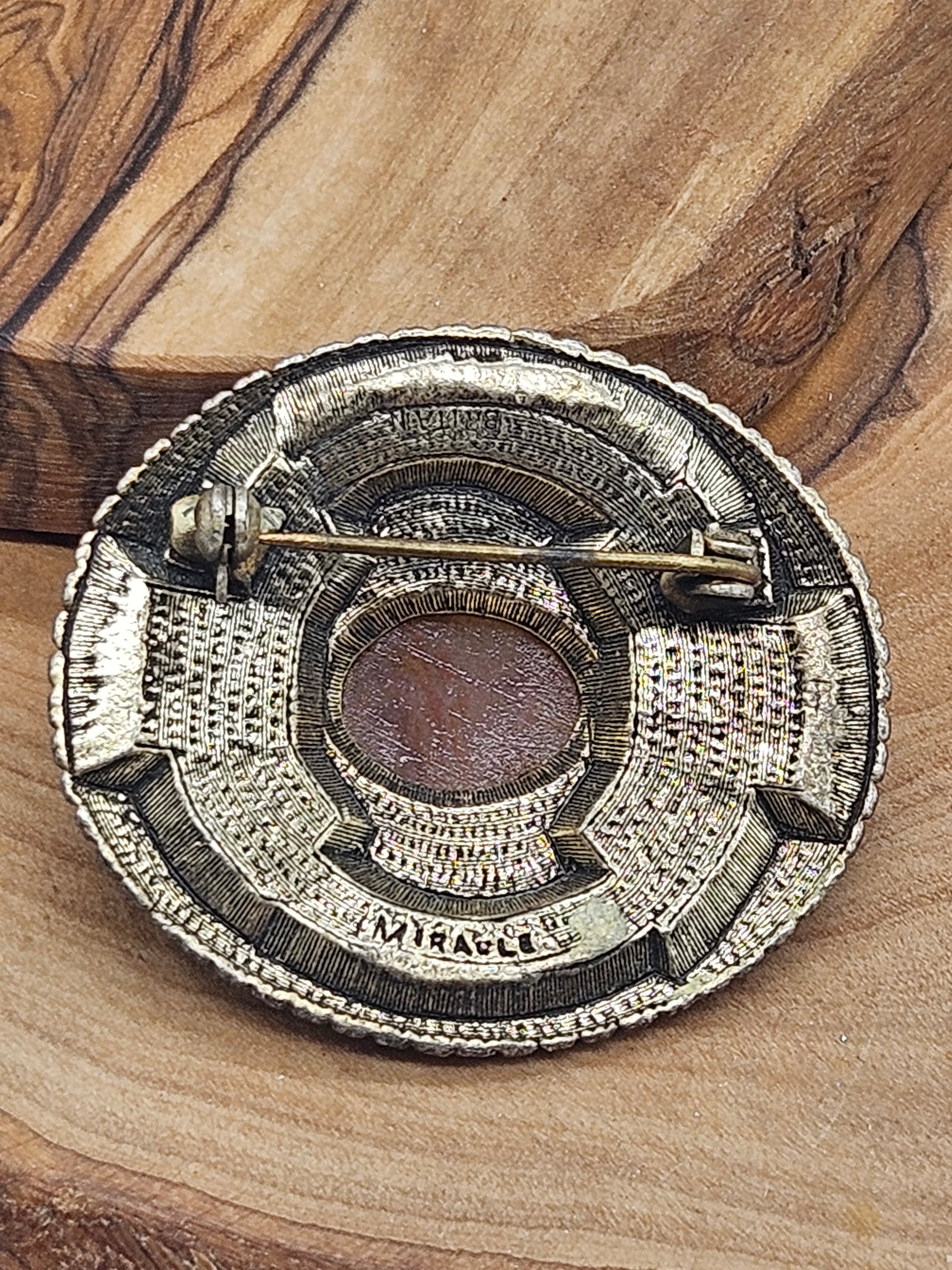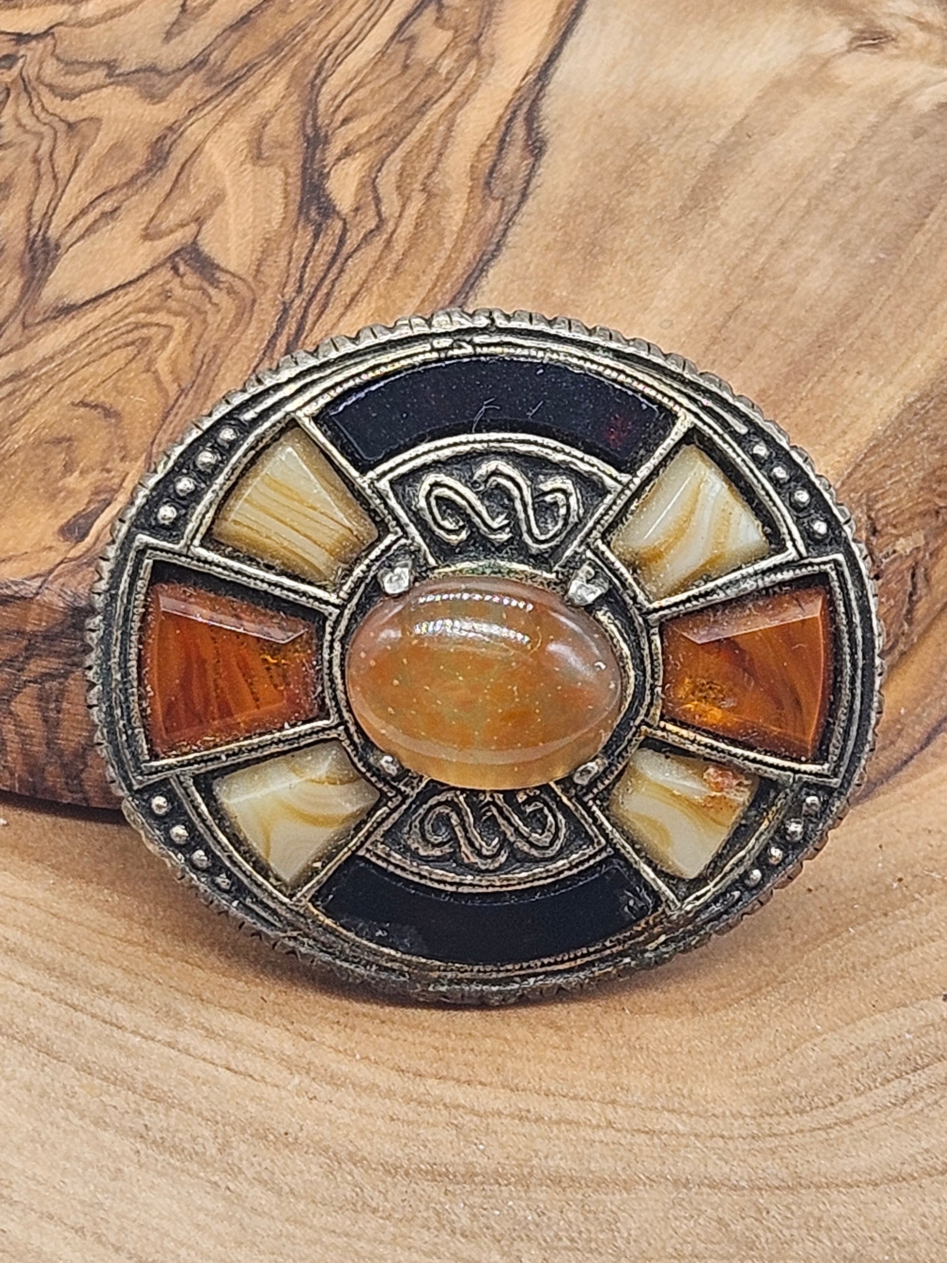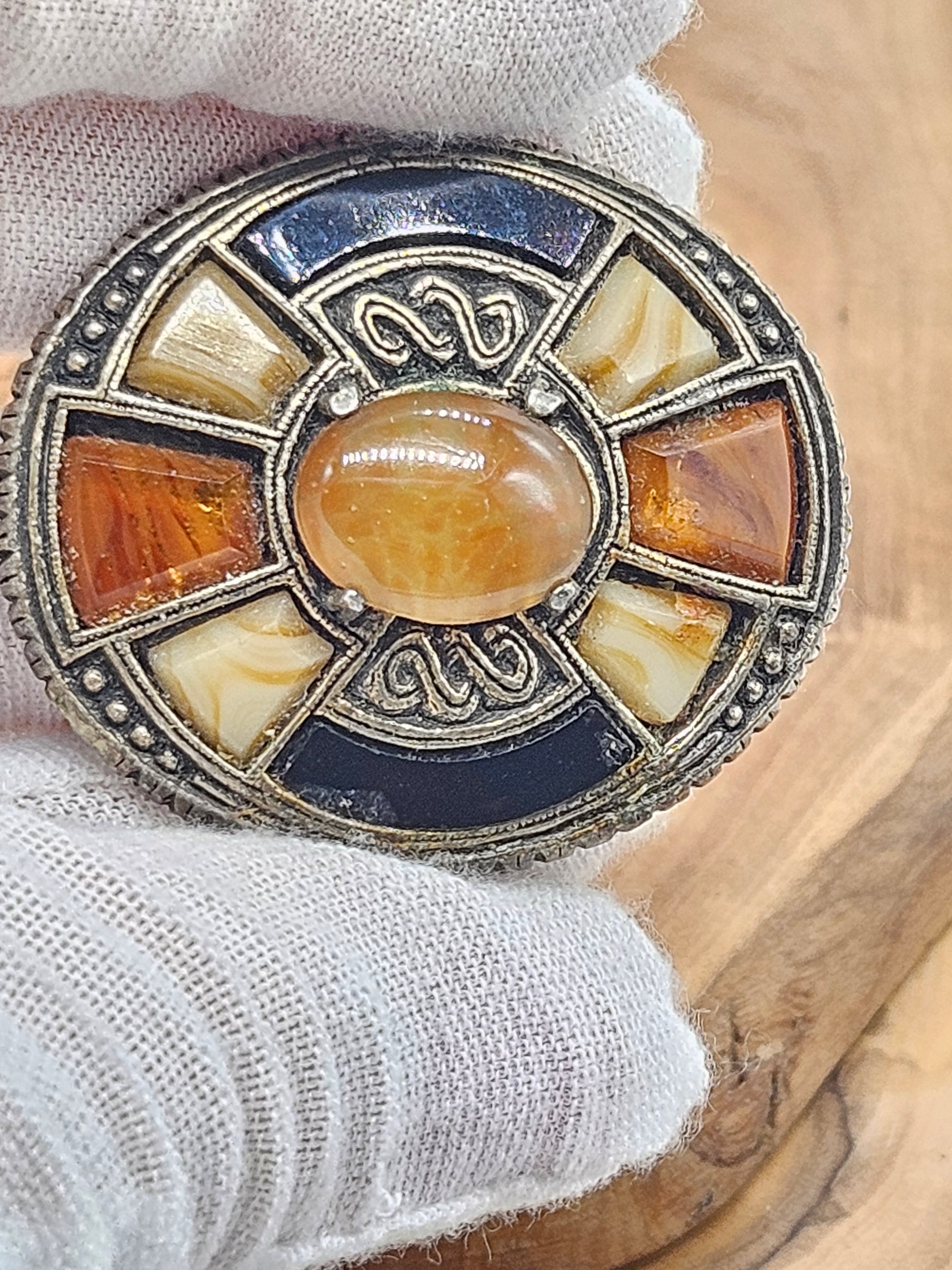 Vintage Bronze Colour Scottish Brooch with Stone and glass inserts, VGC, L1097