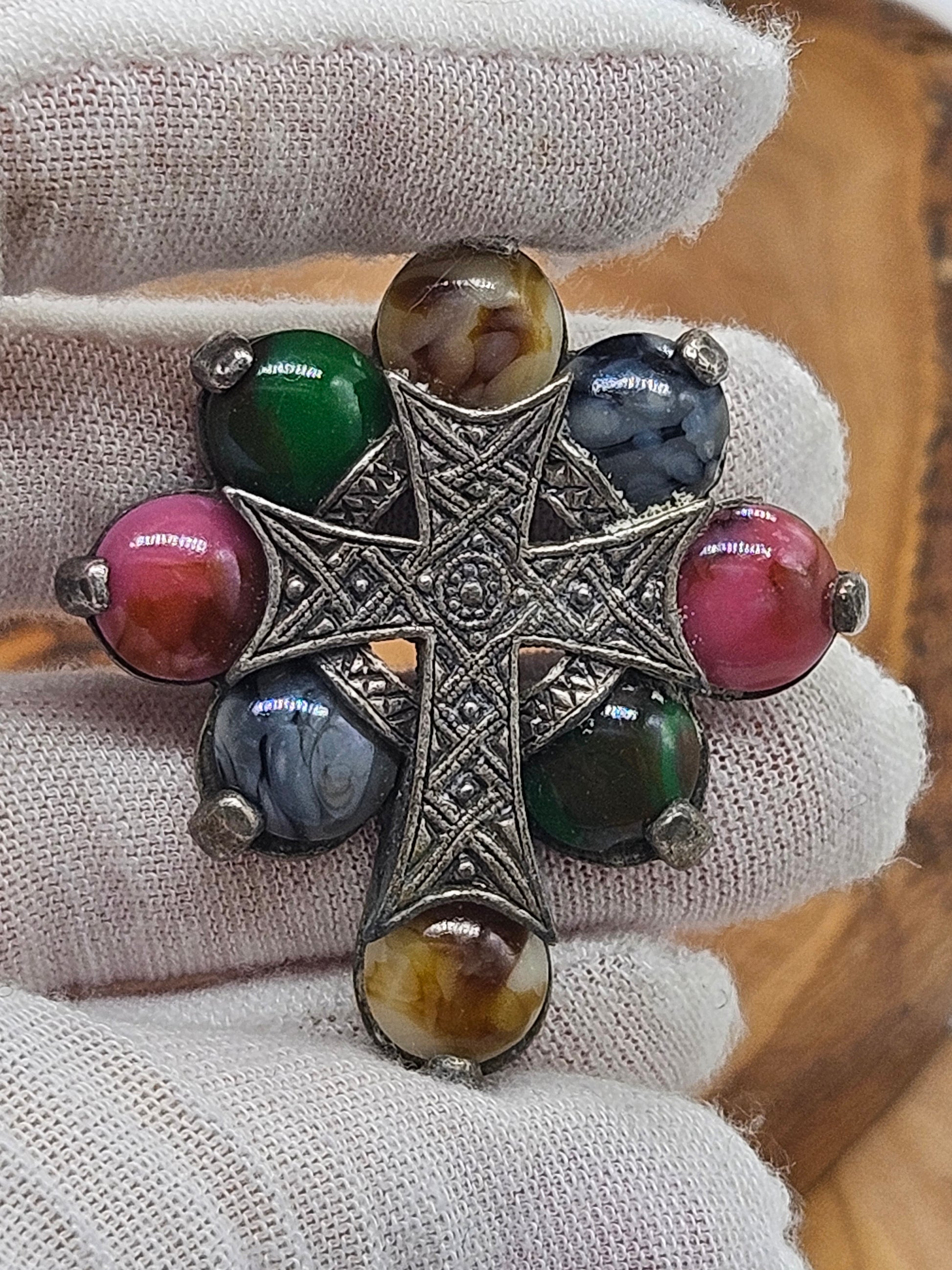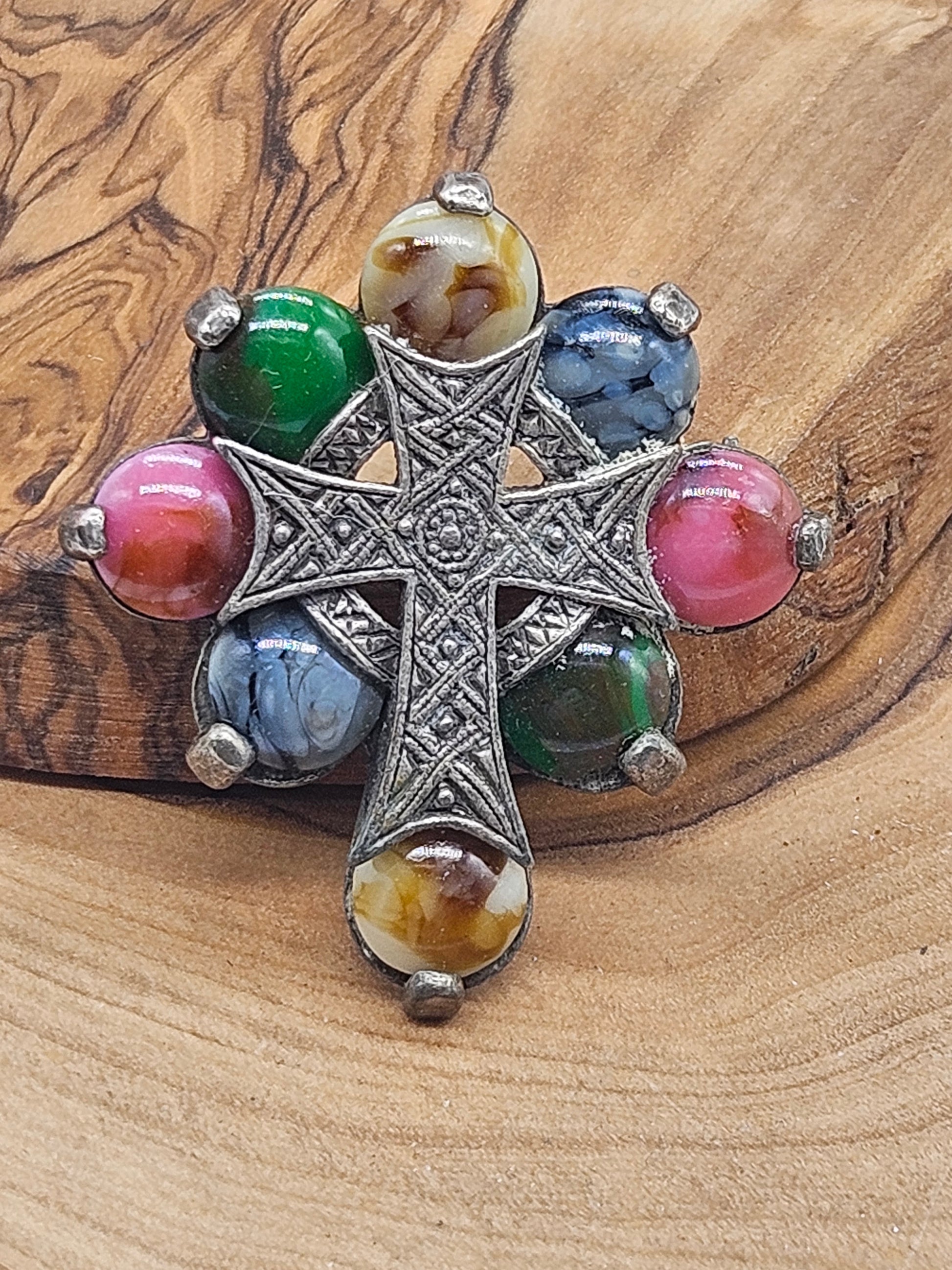 Vintage Scottish Brooch/Pendant Celtic Cross with Stone inserts, VGC, L1099